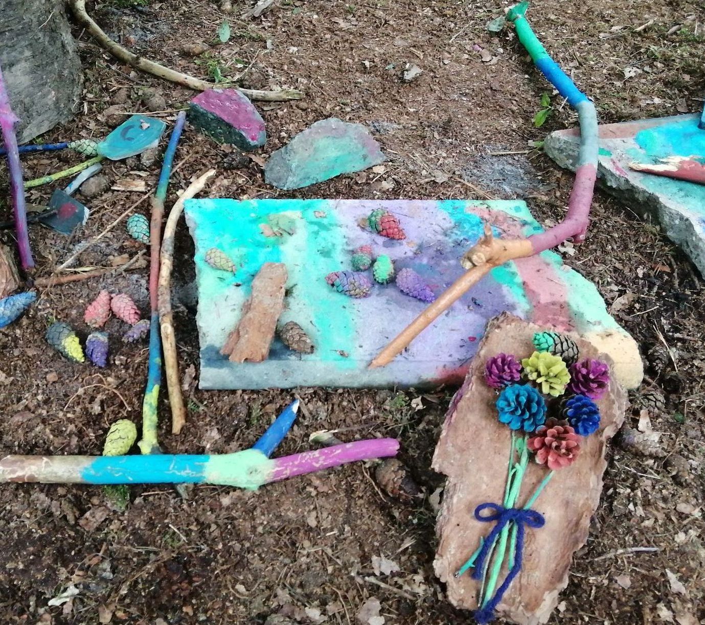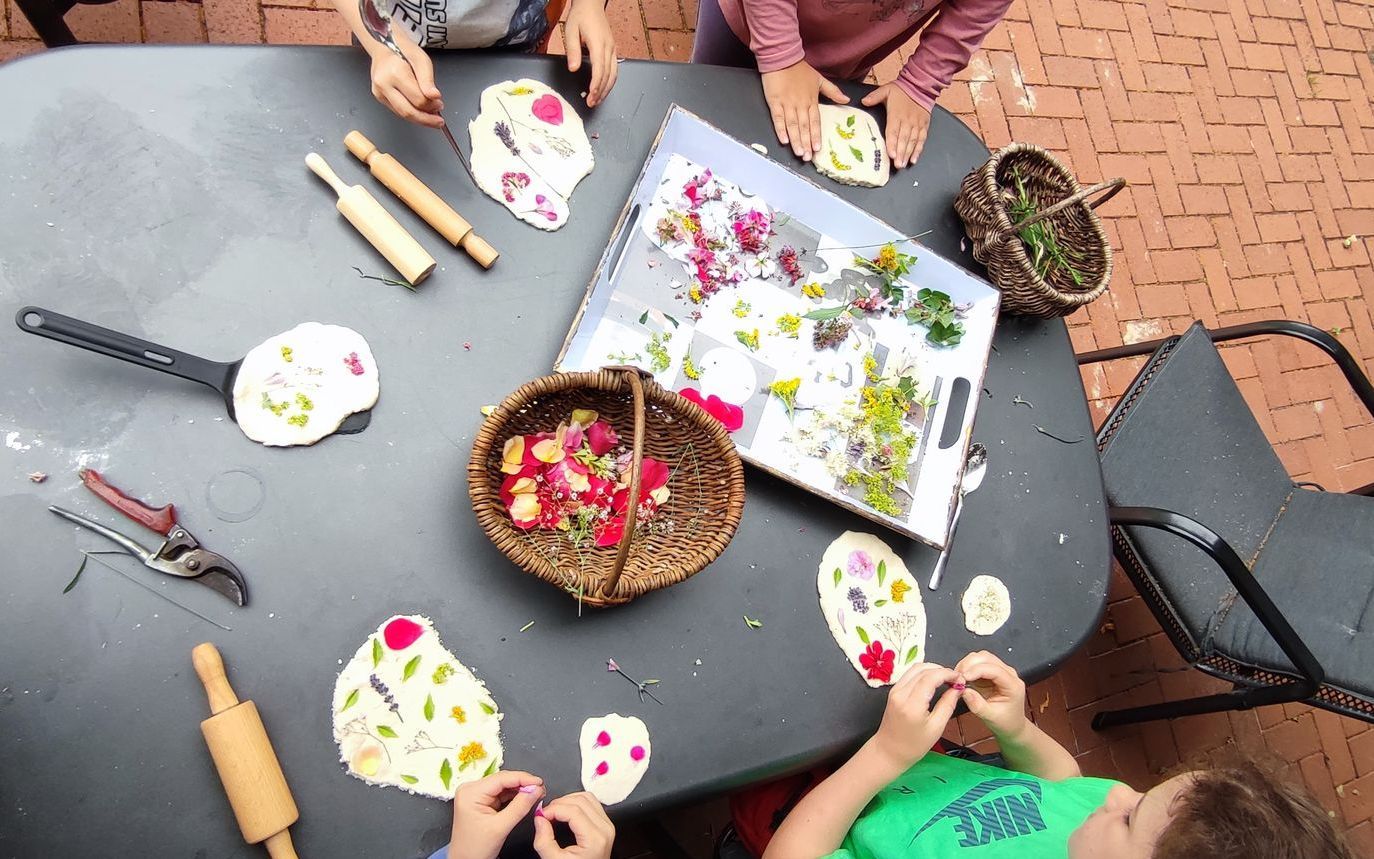 gehen, in Laubhaufen springen, Blumenkränzchen binden, sich ausprobieren,